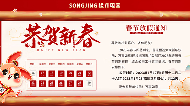 尊敬的松井客戶、各位朋友: 虎振雄風(fēng)留浩氣,兔迎盛世啟新程。歲杪春臨,華章日新,春節(jié)即將到來(lái),感謝…